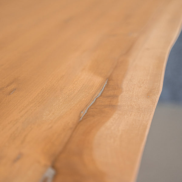 Der Tisch besteht aus einem Stück massivem Sapelli-Holz und ist 7cm stark. Dadurch ist das Holz sehr langlebig und belastbar. Natürlich wollen wir nur das Beste für unsere Kunden liefern, weshalb das Holz bis zu 10 / 12% rückgetrocknet wird. Die Unterseite ist mit Stahlprofilen bewährt, um sicherzustellen, dass sich das Holz kaum verzieht.