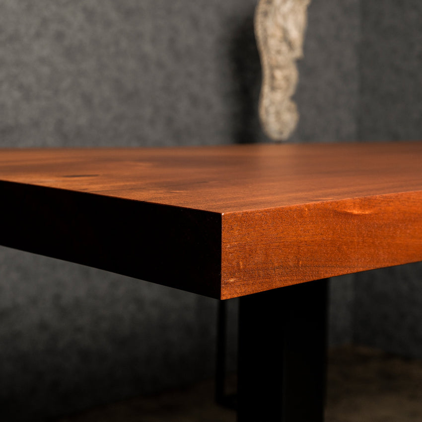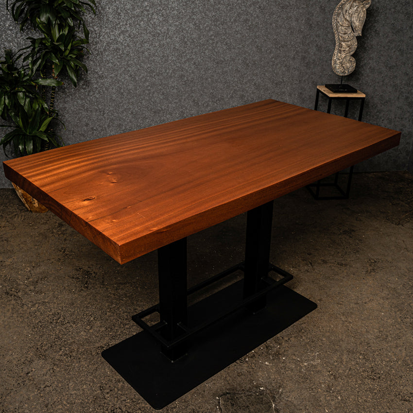 Der Tisch besteht aus einem Stück massivem Sipo-Holz und ist 7cm stark. Dadurch ist das Holz sehr langlebig und belastbar. Natürlich wollen wir nur das Beste für unsere Kunden liefern, weshalb das Holz bis zu 10 / 12% rückgetrocknet wird. Die Unterseite ist mit Stahlprofilen bewährt, um sicherzustellen, dass sich das Holz kaum verzieht.