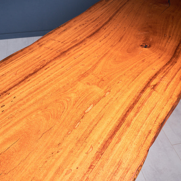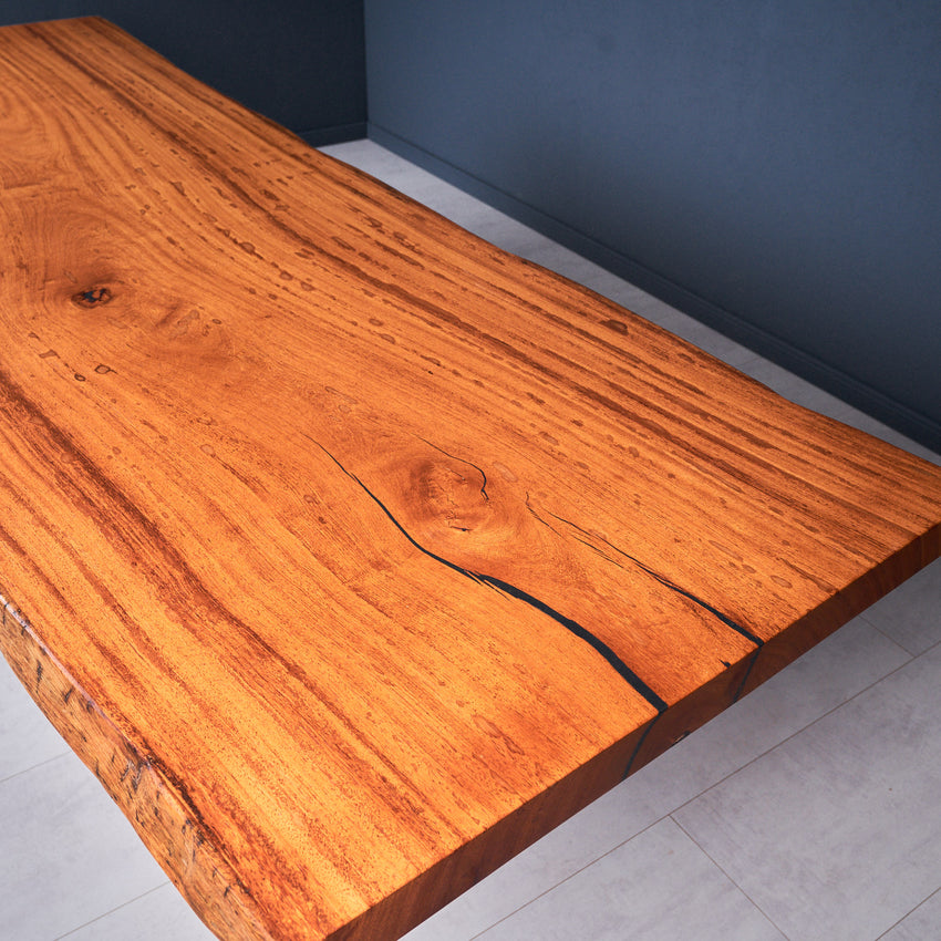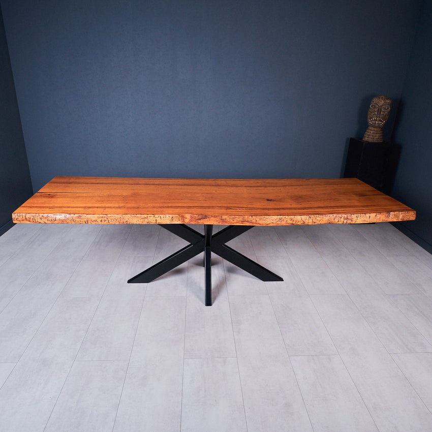 Die Basralocus-Holzart hat alle Eigenschaften, die eine Tischplatte braucht. Die Tischplatte hat eine wunderschöne helle Farbe und hat dadurch eine einzigartige Ausstrahlung. Es ist sehr langlebiges Holz mit einem oft vorkommenden Wechseldrehwuchs. Basralocus Holz ist sehr fest und wird hauptsächlich für Außenkonstruktionen verwendet. Indem wir das beste Holz aus dem Stamm entnehmen, erschaffen wir den perfekten Tisch für Sie.