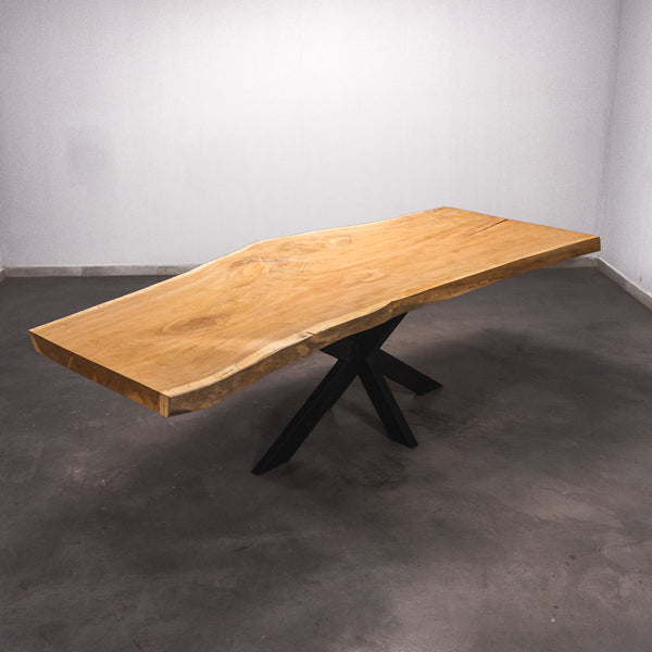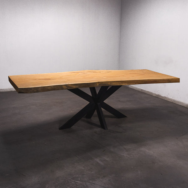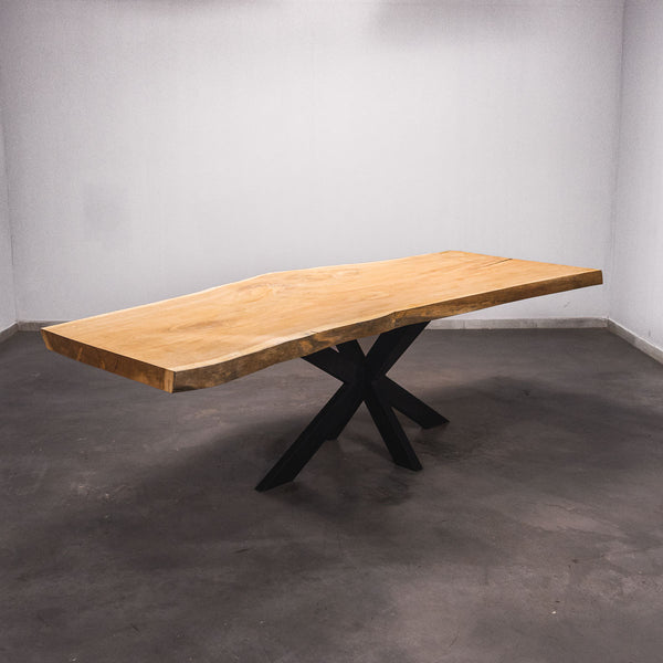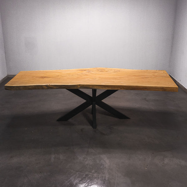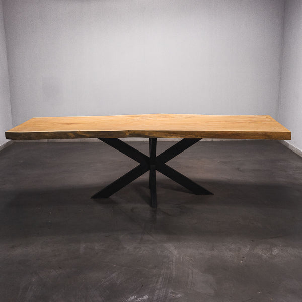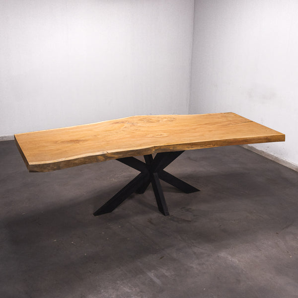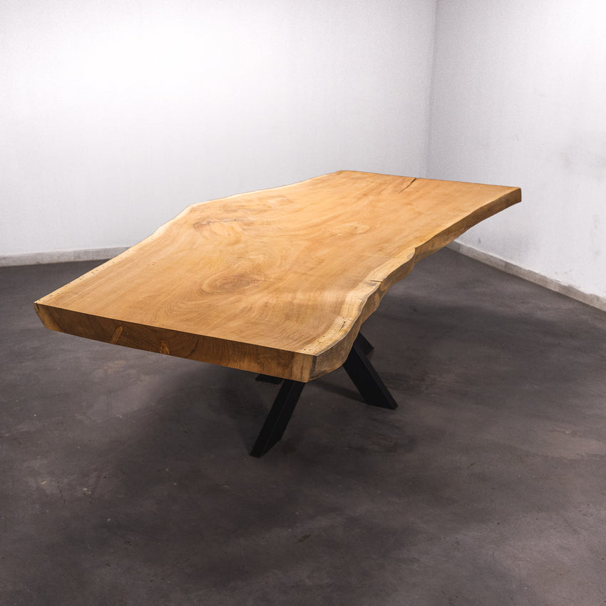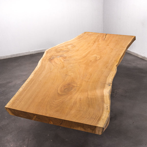 Der Tisch besteht aus einem Stück massivem Doussie-Holz und ist 7cm stark. Dadurch ist das Holz sehr langlebig und belastbar. Natürlich wollen wir nur das Beste für unsere Kunden liefern, weshalb das Holz bis zu 10 / 12% rückgetrocknet wird. Die Unterseite ist mit Stahlprofilen bewährt, um sicherzustellen, dass sich das Holz kaum verzieht.