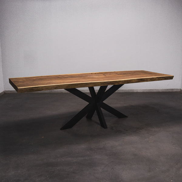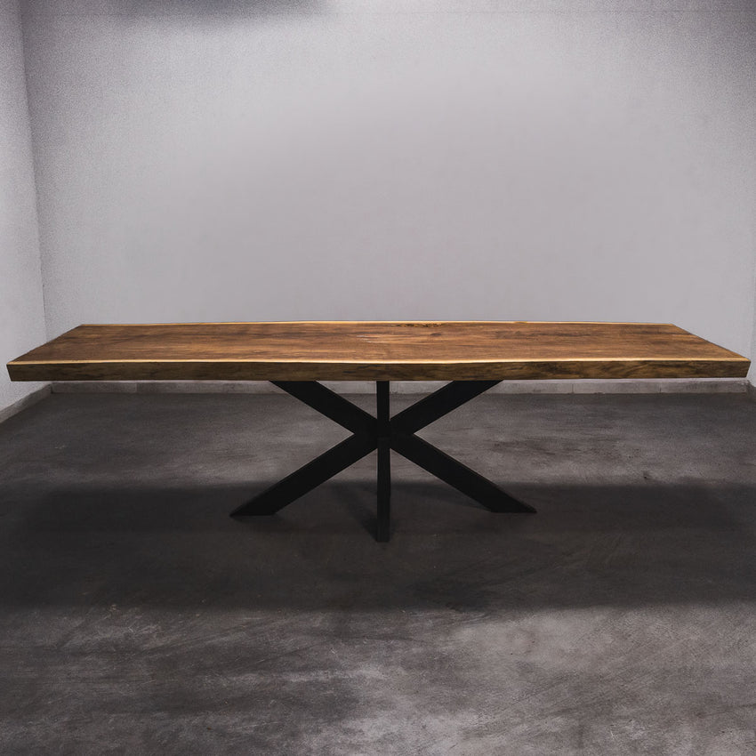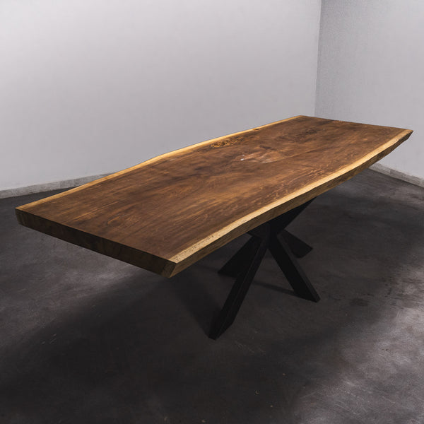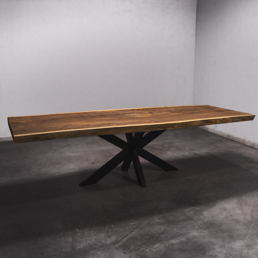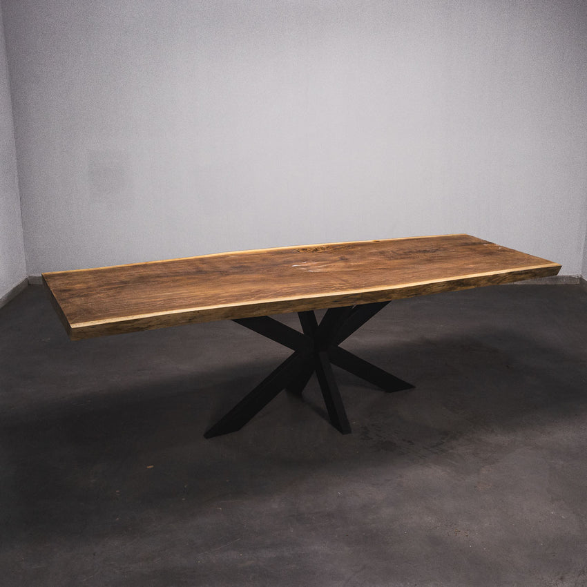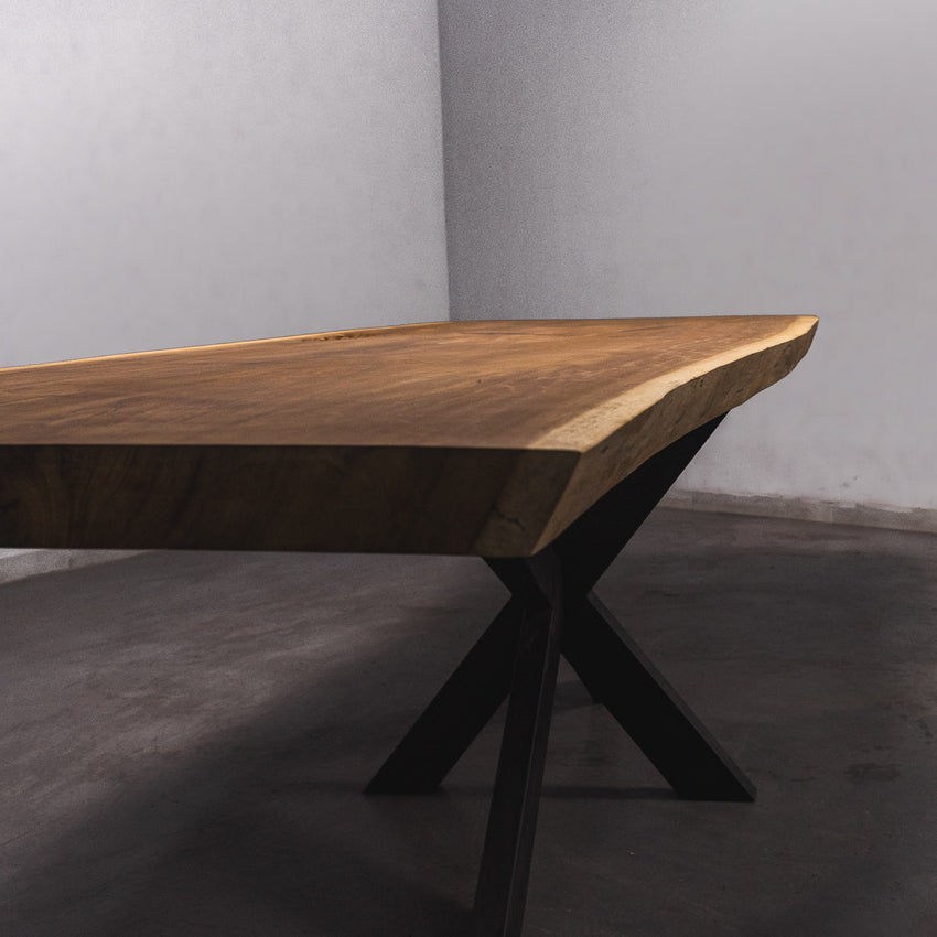 Der Tisch besteht aus einem Stück massivem Iroko-Holz und ist 6,5cm stark. Dadurch ist das Holz sehr langlebig und belastbar. Natürlich wollen wir nur das Beste für unsere Kunden liefern, weshalb das Holz bis zu 10 / 12% rückgetrocknet wird. Die Unterseite ist mit Stahlprofilen bewährt, um sicherzustellen, dass sich das Holz kaum verzieht.