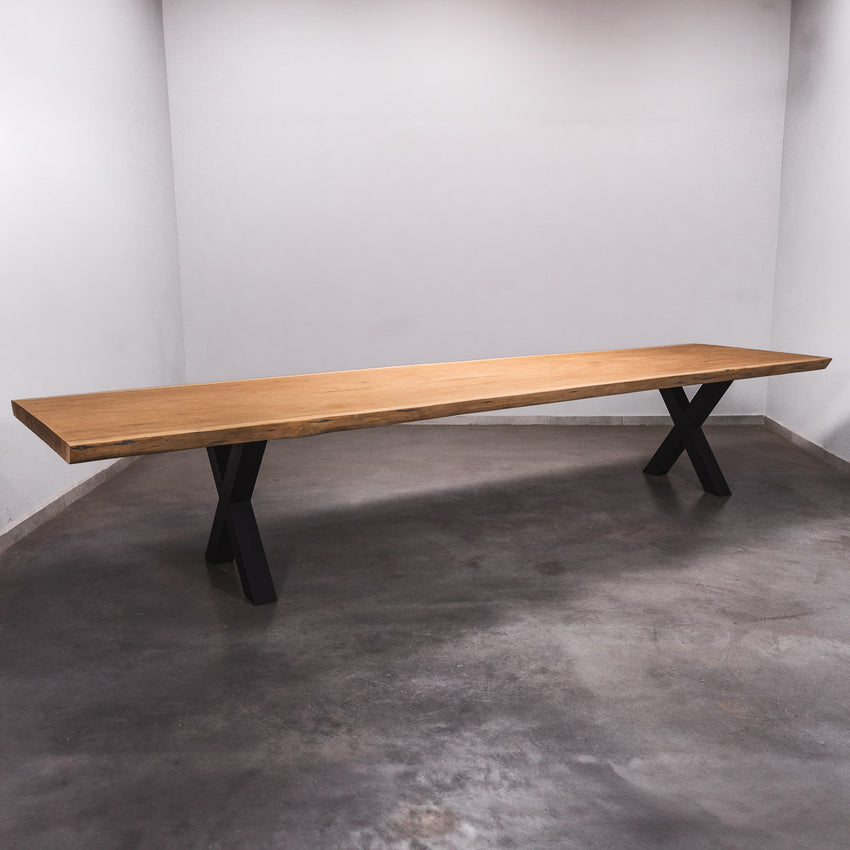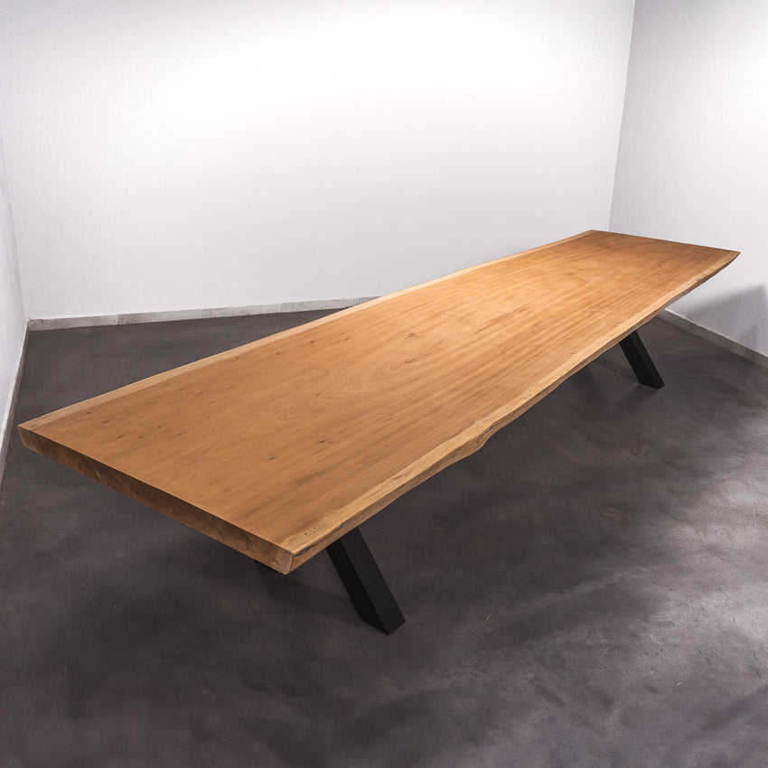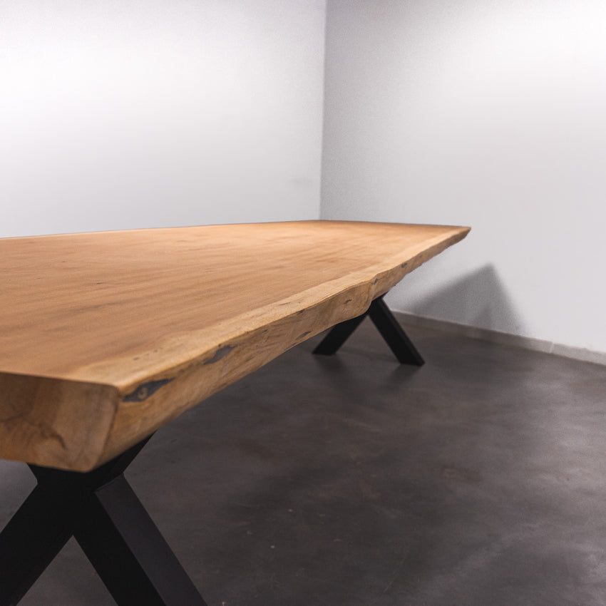 Der Tisch besteht aus einem Stück massivem Sapelli-Holz und ist 7cm stark. Dadurch ist das Holz sehr langlebig und belastbar. Natürlich wollen wir nur das Beste für unsere Kunden liefern, weshalb das Holz bis zu 10 / 12% rückgetrocknet wird. Die Unterseite ist mit Stahlprofilen bewährt, um sicherzustellen, dass sich das Holz kaum verzieht.