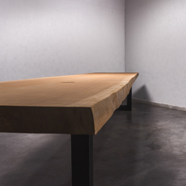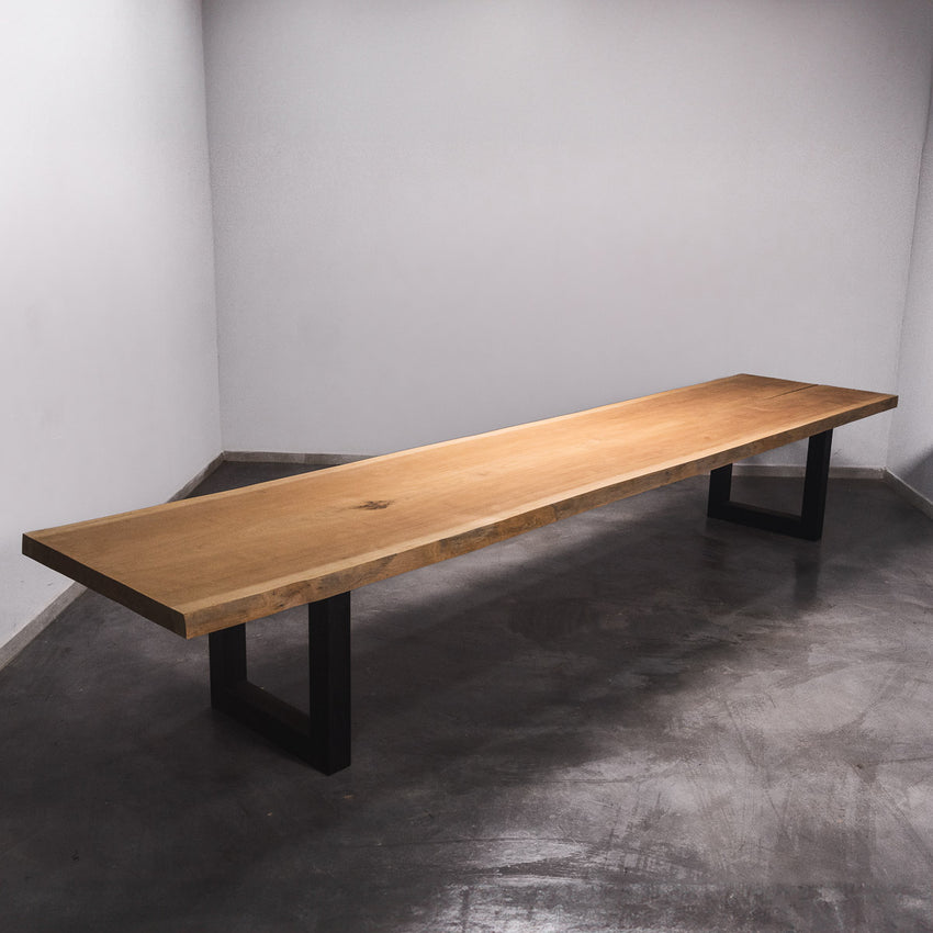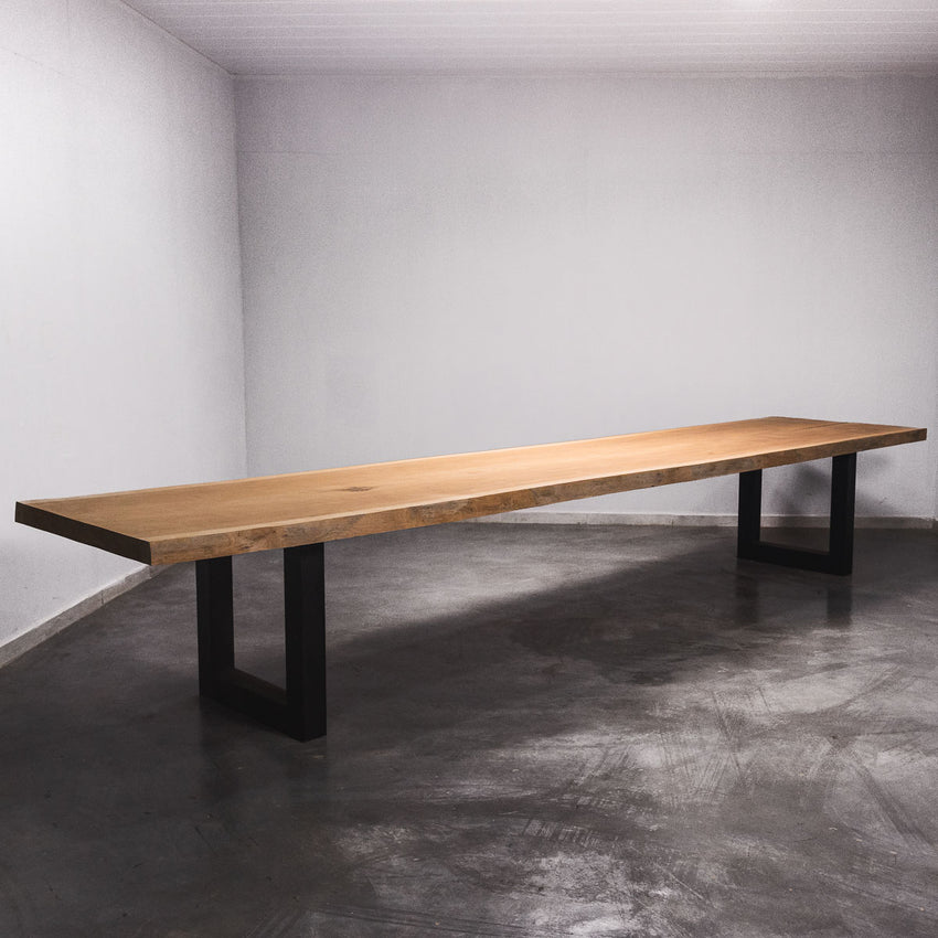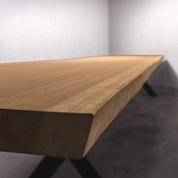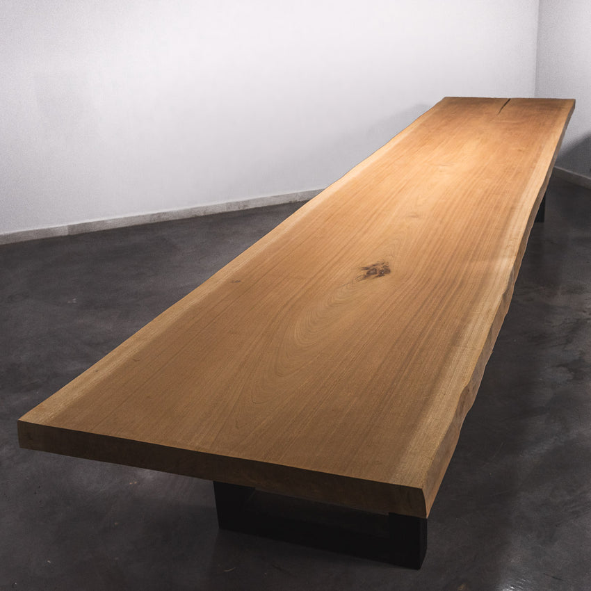 Der Tisch besteht aus einem Stück massivem Sapelli-Holz und ist 7cm stark. Dadurch ist das Holz sehr langlebig und belastbar. Natürlich wollen wir nur das Beste für unsere Kunden liefern, weshalb das Holz bis zu 10 / 12% rückgetrocknet wird. Die Unterseite ist mit Stahlprofilen bewährt, um sicherzustellen, dass sich das Holz kaum verzieht.