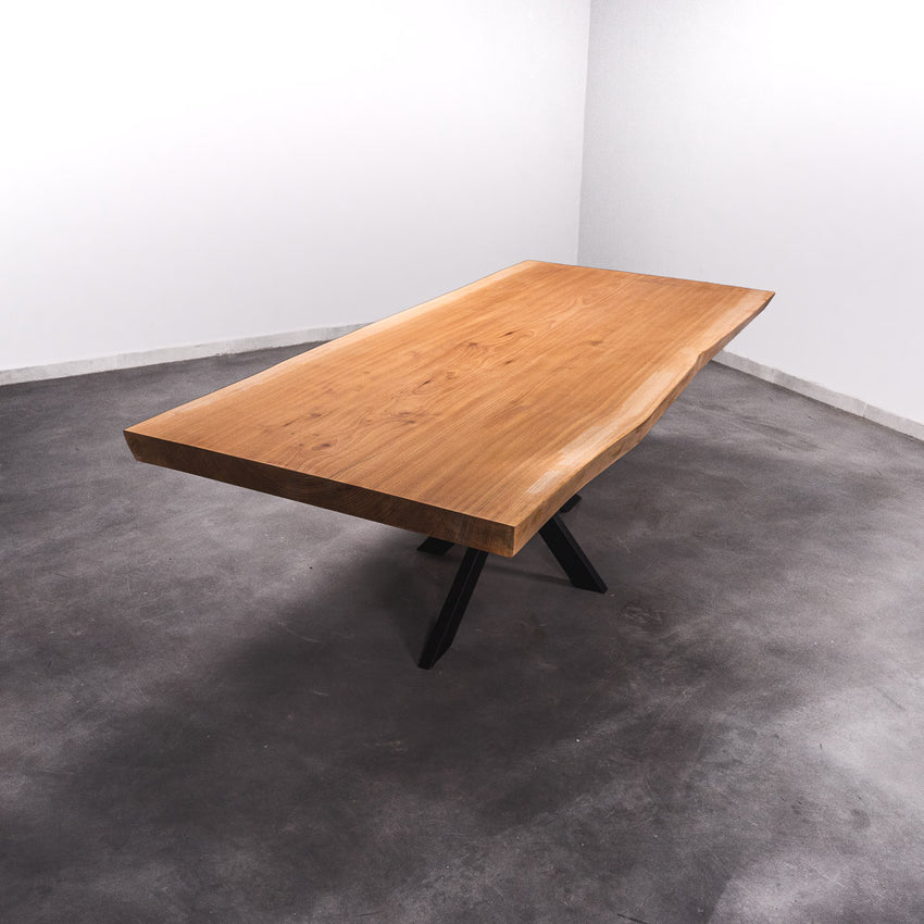 Der Tisch besteht aus einem Stück massivem Sipo-Holz und ist 7cm stark. Dadurch ist das Holz sehr langlebig und belastbar. Natürlich wollen wir nur das Beste für unsere Kunden liefern, weshalb das Holz bis zu 10 / 12% rückgetrocknet wird. Die Unterseite ist mit Stahlprofilen bewährt, um sicherzustellen, dass sich das Holz kaum verzieht.