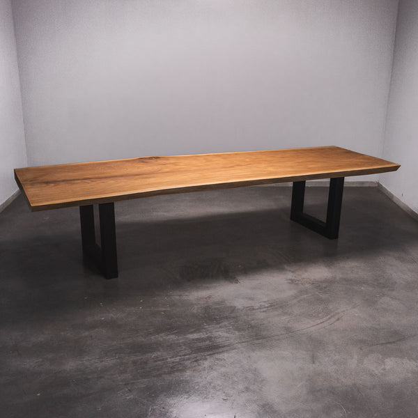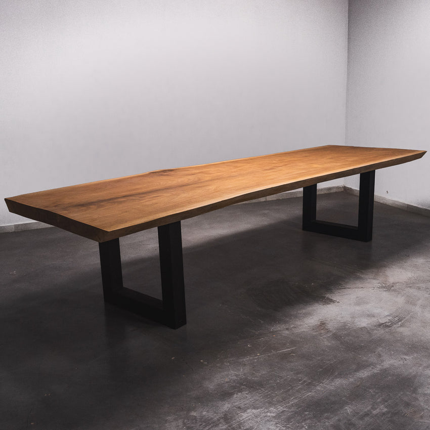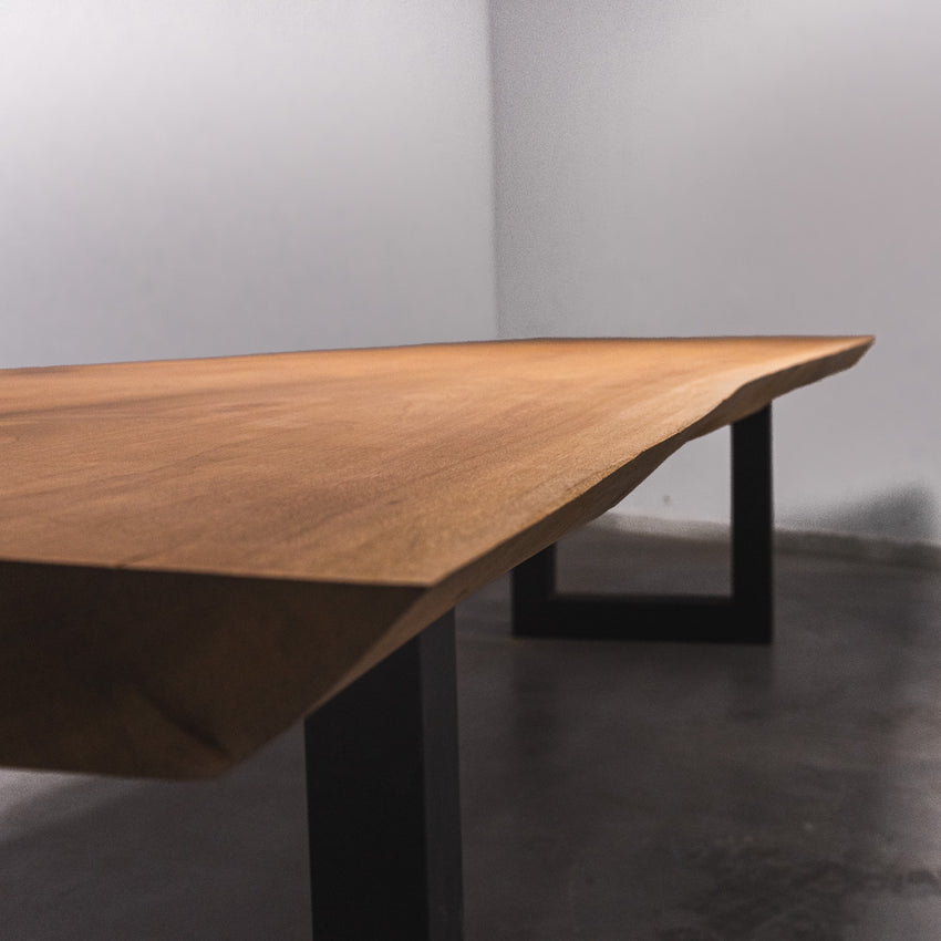 Der Tisch besteht aus einem Stück massivem Sipo-Holz und ist 7cm stark. Dadurch ist das Holz sehr langlebig und belastbar. Natürlich wollen wir nur das Beste für unsere Kunden liefern, weshalb das Holz bis zu 10 / 12% rückgetrocknet wird. Die Unterseite ist mit Stahlprofilen bewährt, um sicherzustellen, dass sich das Holz kaum verzieht.
