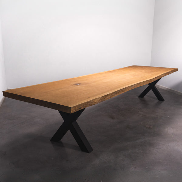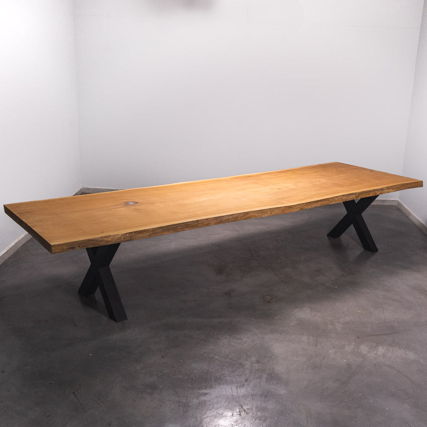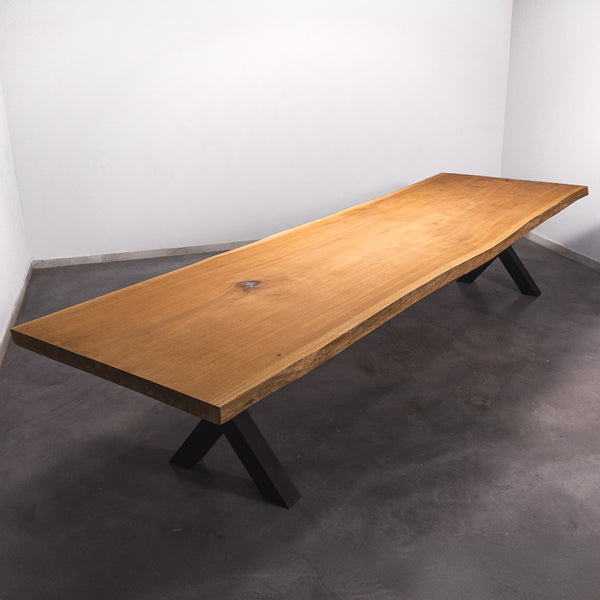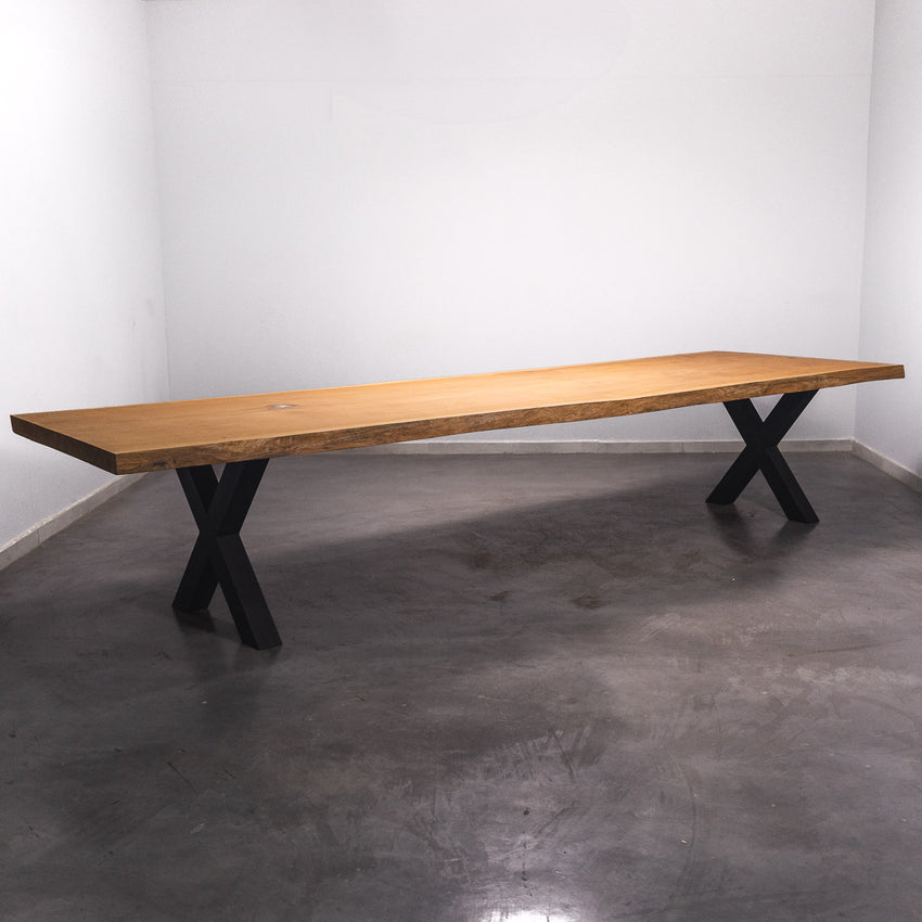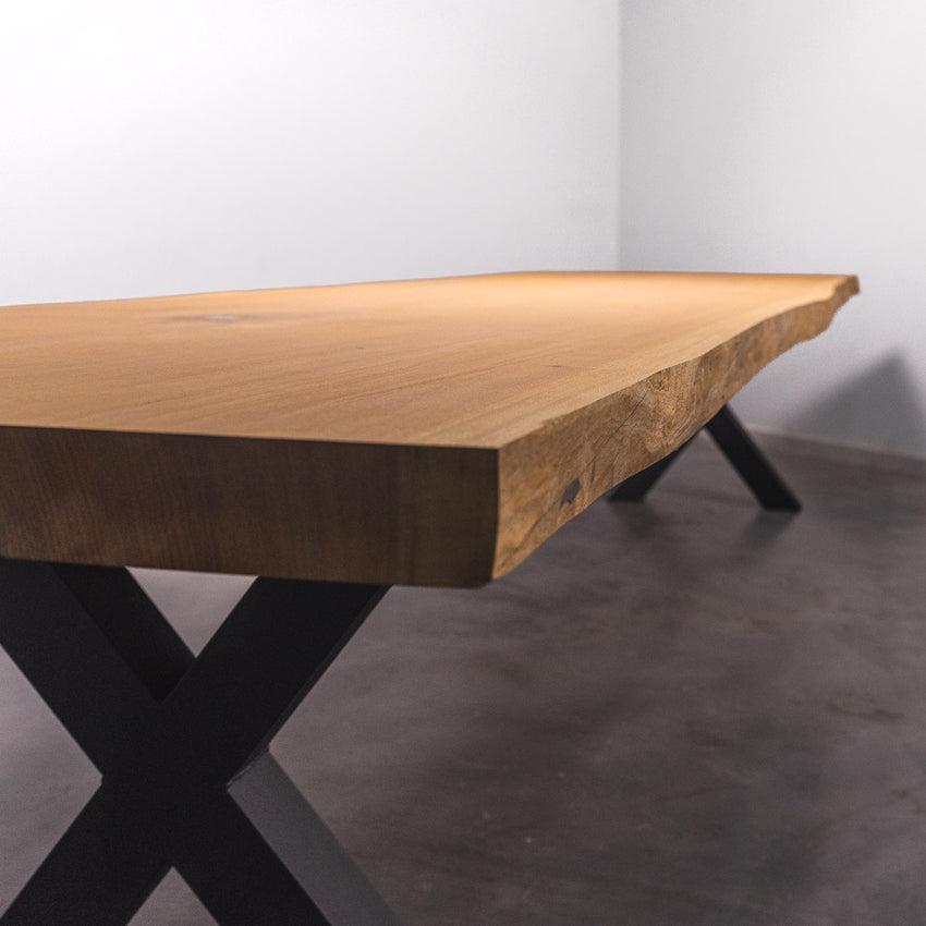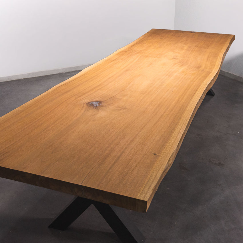 Der Tisch besteht aus einem Stück massivem Sipo-Holz und ist 7cm stark. Dadurch ist das Holz sehr langlebig und belastbar. Natürlich wollen wir nur das Beste für unsere Kunden liefern, weshalb das Holz bis zu 10 / 12% rückgetrocknet wird. Die Unterseite ist mit Stahlprofilen bewährt, um sicherzustellen, dass sich das Holz kaum verzieht.