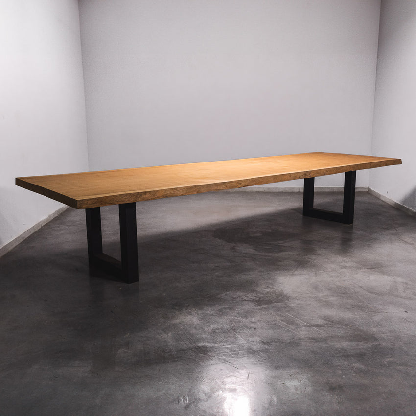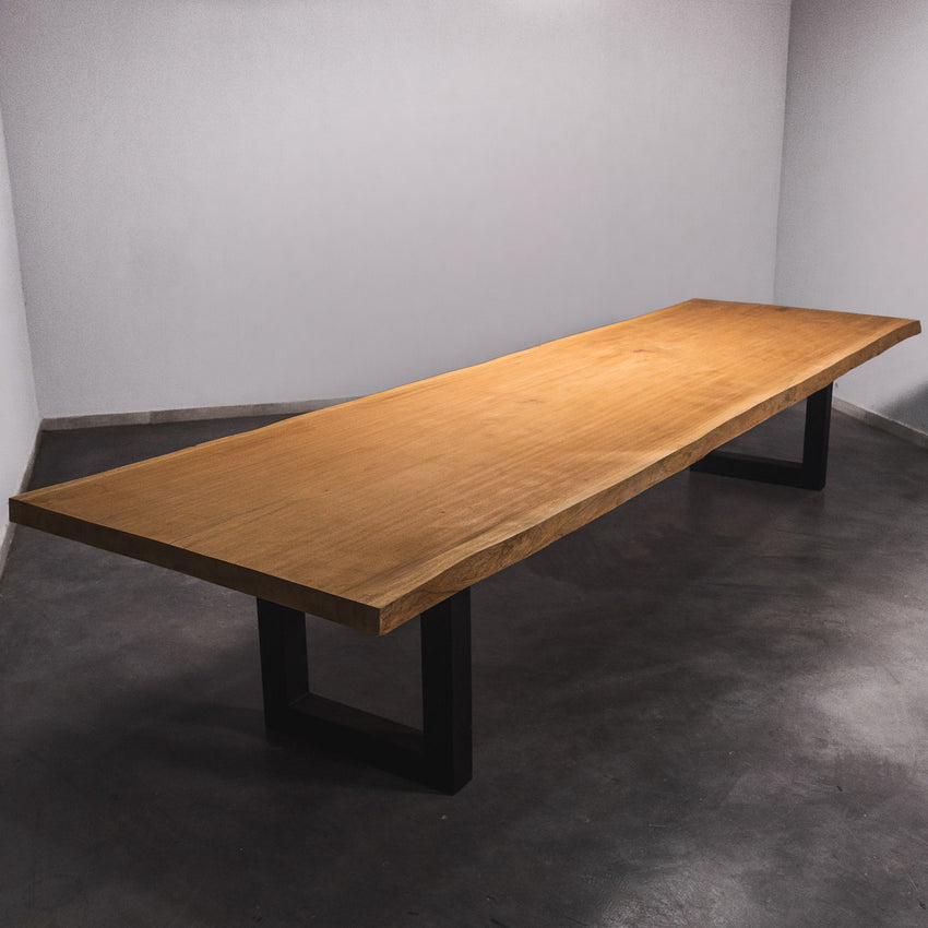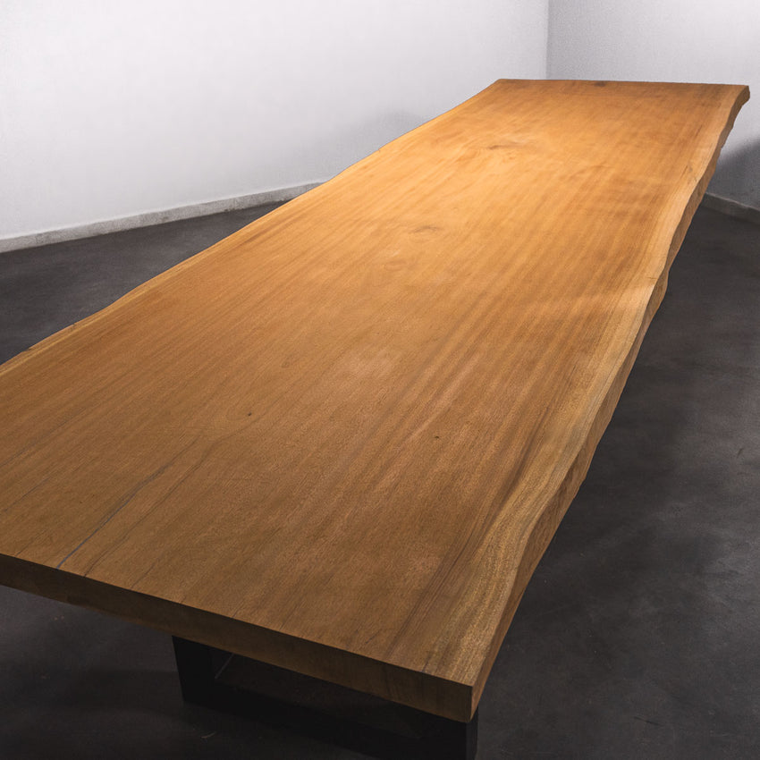 Der Tisch besteht aus einem Stück massivem Sipo-Holz und ist 7cm stark. Dadurch ist das Holz sehr langlebig und belastbar. Natürlich wollen wir nur das Beste für unsere Kunden liefern, weshalb das Holz bis zu 10 / 12% rückgetrocknet wird. Die Unterseite ist mit Stahlprofilen bewährt, um sicherzustellen, dass sich das Holz kaum verzieht.