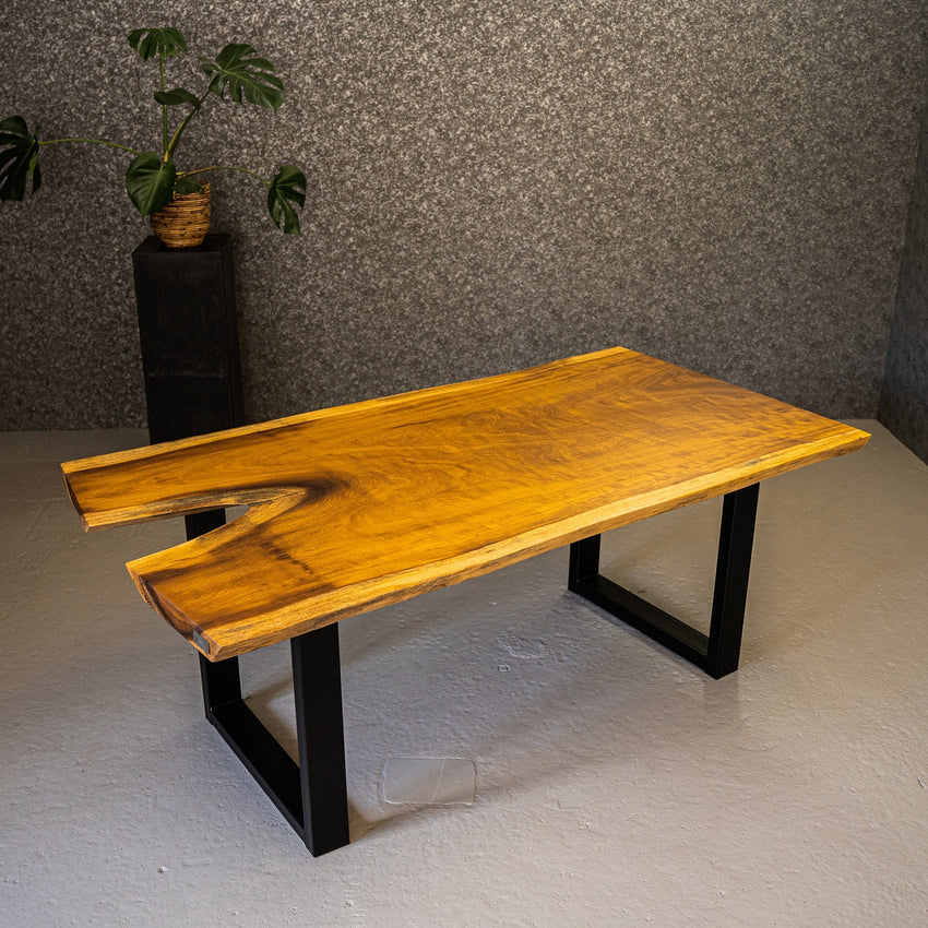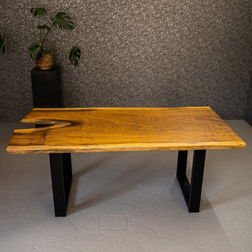 Der Tisch besteht aus einem Stück massivem Iroko-Holz und ist 6,5cm stark. Dadurch ist das Holz sehr langlebig und belastbar. Natürlich wollen wir nur das Beste für unsere Kunden liefern, weshalb das Holz bis zu 10 / 12% rückgetrocknet wird. Die Unterseite ist mit Stahlprofilen bewährt, um sicherzustellen, dass sich das Holz kaum verzieht.