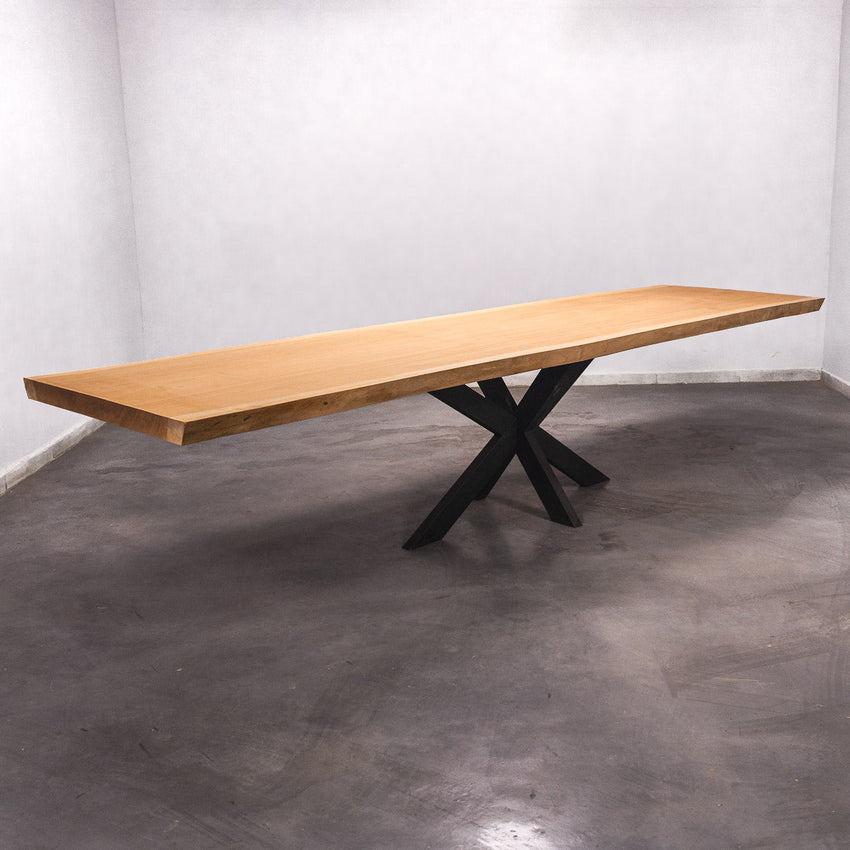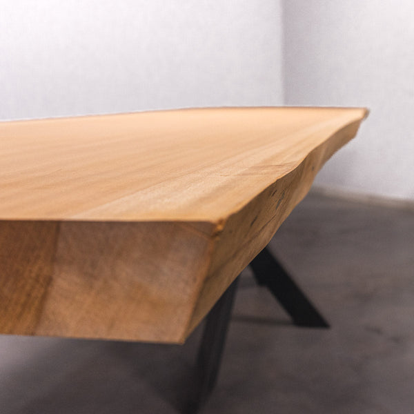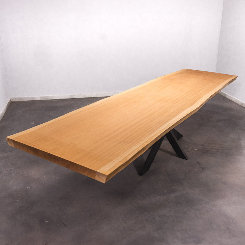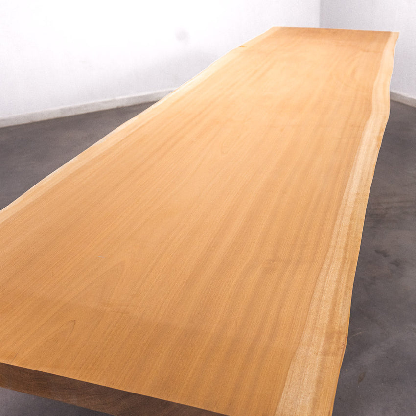 Der Tisch besteht aus einem Stück massivem Sapelli-Holz und ist 7cm stark. Dadurch ist das Holz sehr langlebig und belastbar. Natürlich wollen wir nur das Beste für unsere Kunden liefern, weshalb das Holz bis zu 10 / 12% rückgetrocknet wird. Die Unterseite ist mit Stahlprofilen bewährt, um sicherzustellen, dass sich das Holz kaum verzieht.