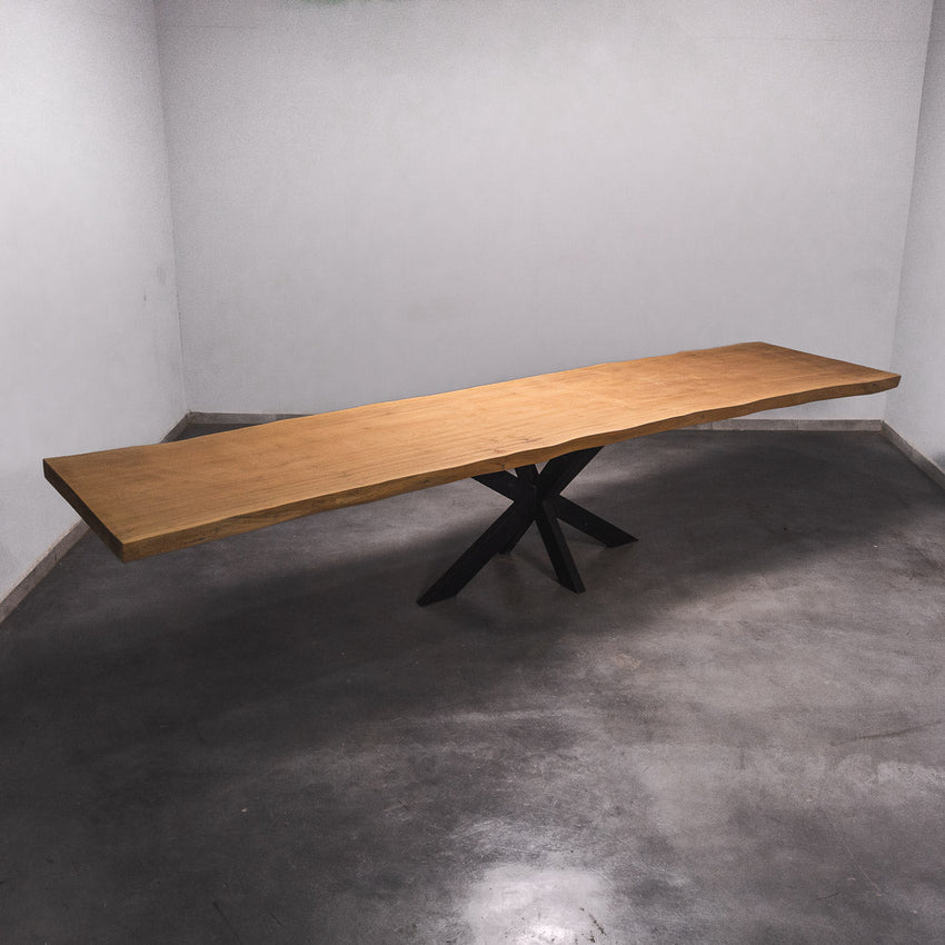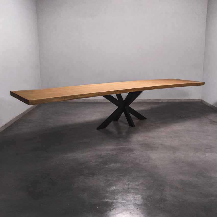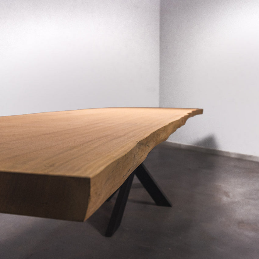 Der Tisch besteht aus einem Stück massivem Sapelli-Holz und ist 7cm stark. Dadurch ist das Holz sehr langlebig und belastbar. Natürlich wollen wir nur das Beste für unsere Kunden liefern, weshalb das Holz bis zu 10 / 12% rückgetrocknet wird. Die Unterseite ist mit Stahlprofilen bewährt, um sicherzustellen, dass sich das Holz kaum verzieht.