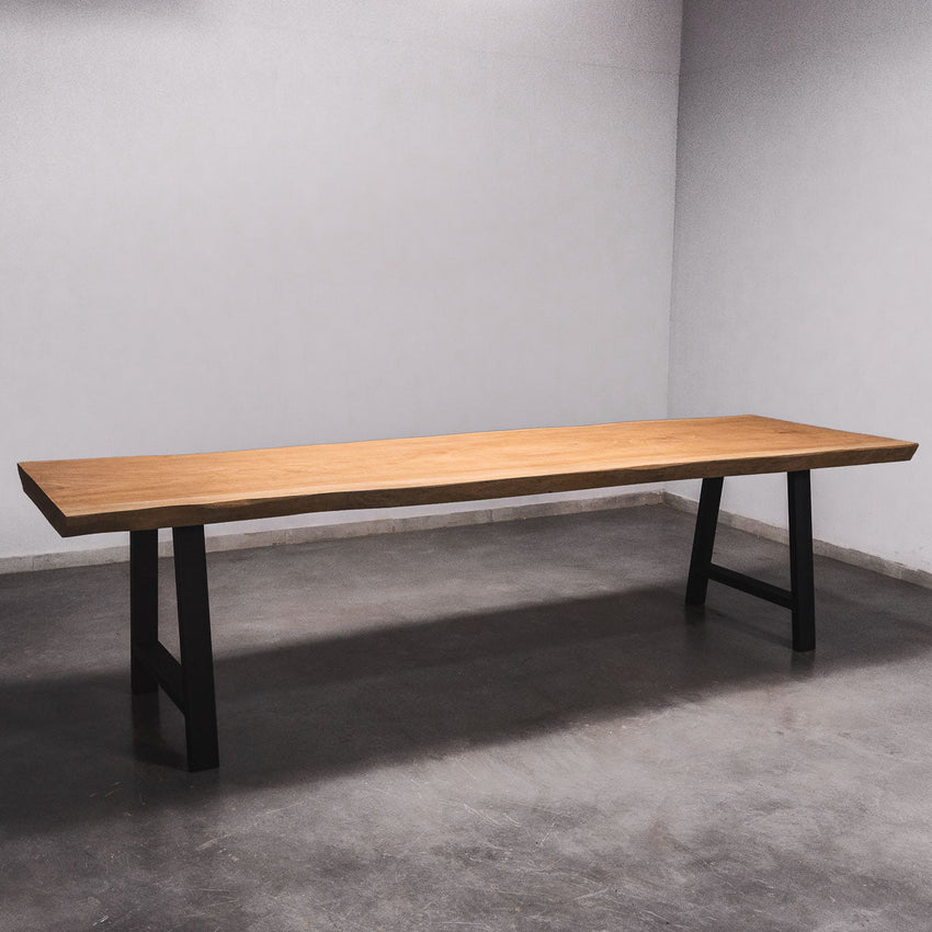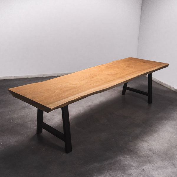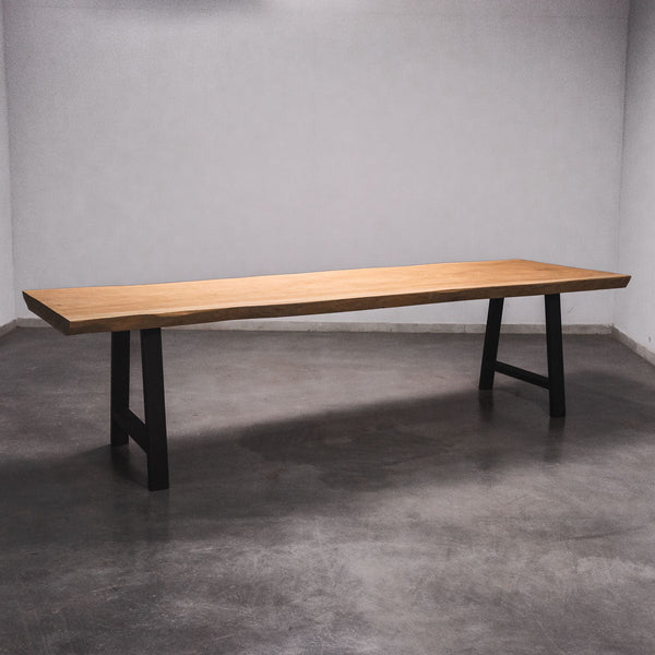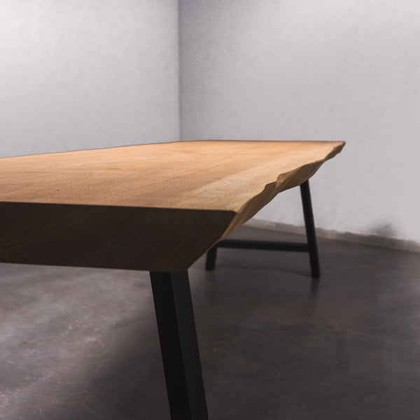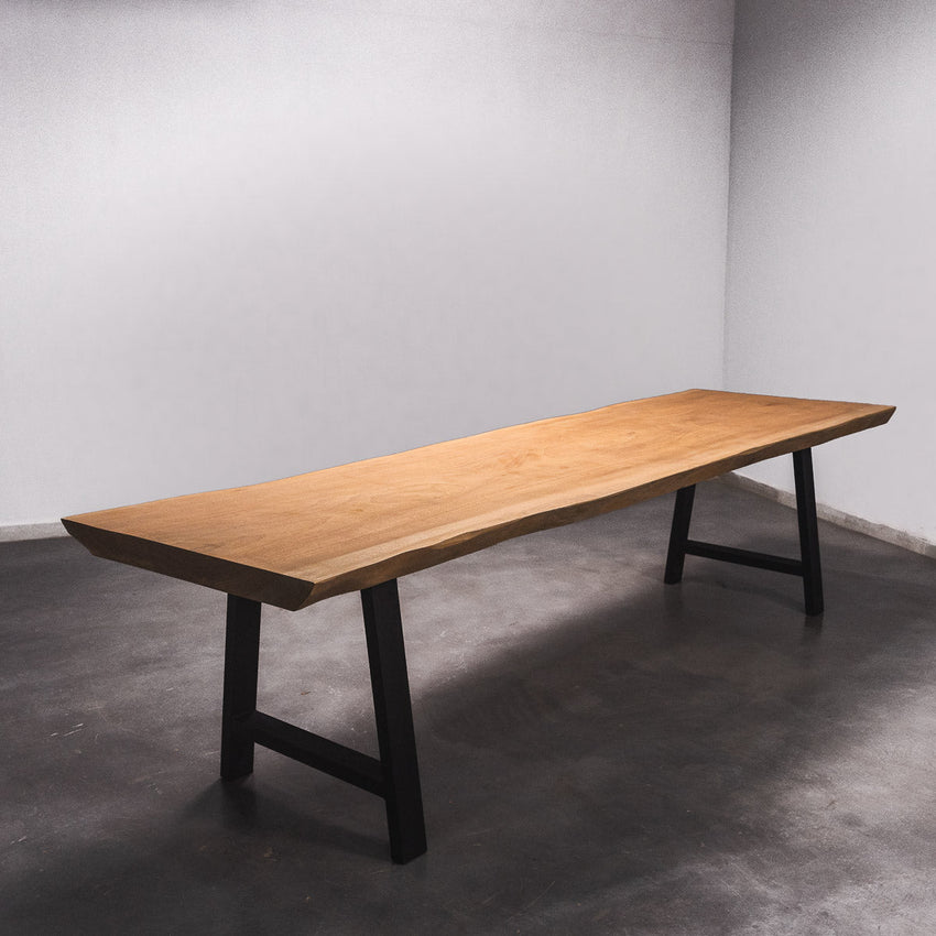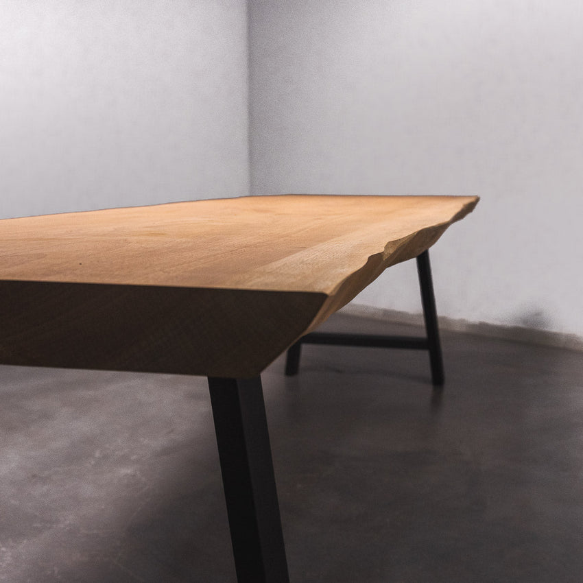 Der Tisch besteht aus einem Stück massivem Sipo-Holz und ist 7cm stark. Dadurch ist das Holz sehr langlebig und belastbar. Natürlich wollen wir nur das Beste für unsere Kunden liefern, weshalb das Holz bis zu 10 / 12% rückgetrocknet wird. Die Unterseite ist mit Stahlprofilen bewährt, um sicherzustellen, dass sich das Holz kaum verzieht.