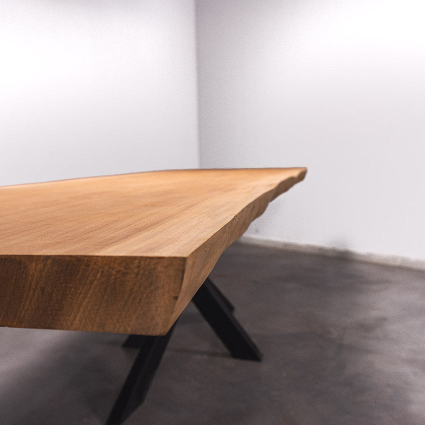 Der Tisch besteht aus einem Stück massivem Sipo-Holz und ist 7cm stark. Dadurch ist das Holz sehr langlebig und belastbar. Natürlich wollen wir nur das Beste für unsere Kunden liefern, weshalb das Holz bis zu 10 / 12% rückgetrocknet wird. Die Unterseite ist mit Stahlprofilen bewährt, um sicherzustellen, dass sich das Holz kaum verzieht.