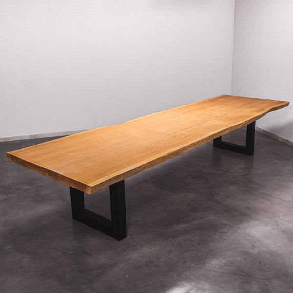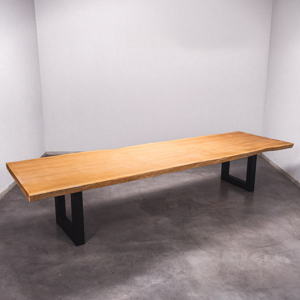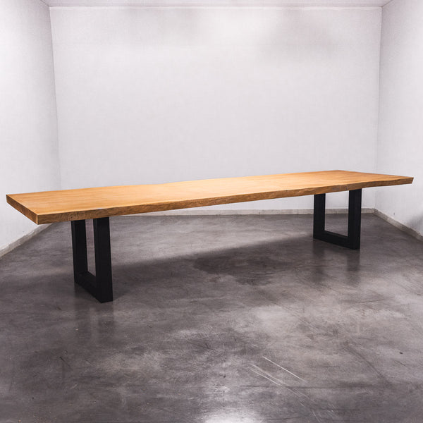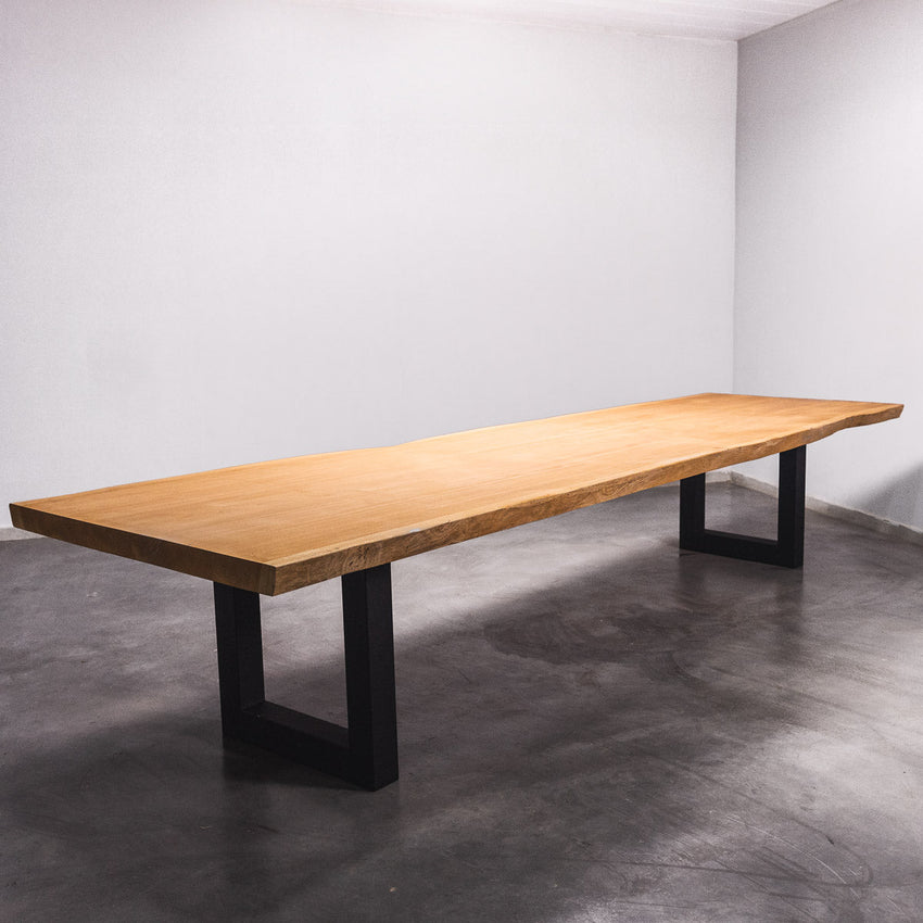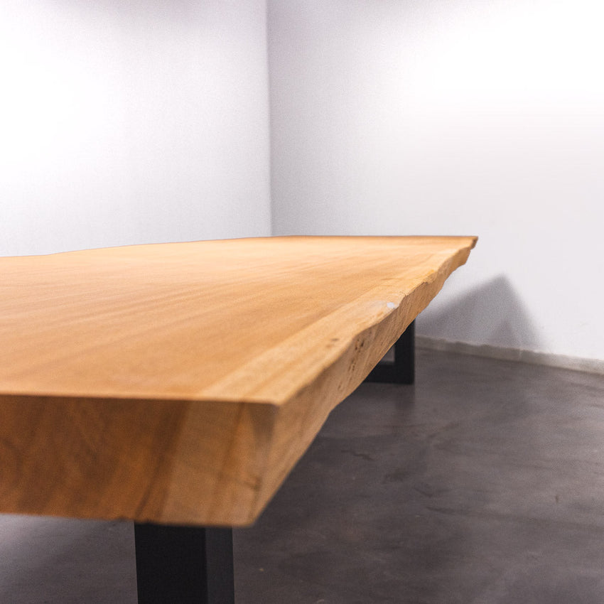 Der Tisch besteht aus einem Stück massivem Sipo-Holz und ist 7cm stark. Dadurch ist das Holz sehr langlebig und belastbar. Natürlich wollen wir nur das Beste für unsere Kunden liefern, weshalb das Holz bis zu 10 / 12% rückgetrocknet wird. Die Unterseite ist mit Stahlprofilen bewährt, um sicherzustellen, dass sich das Holz kaum verzieht.