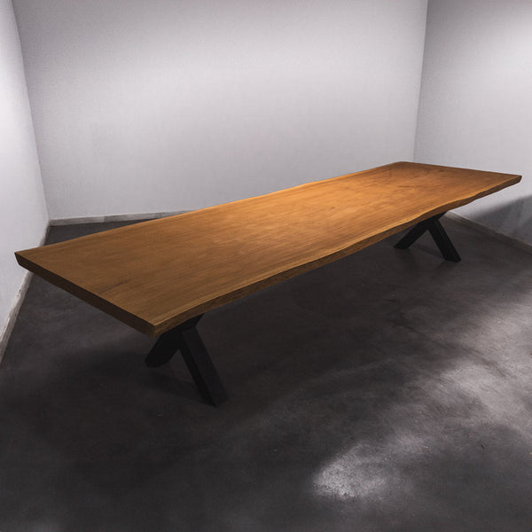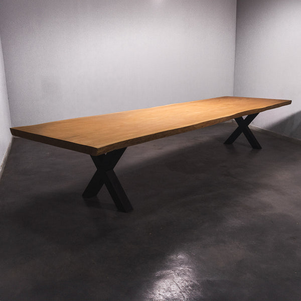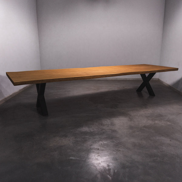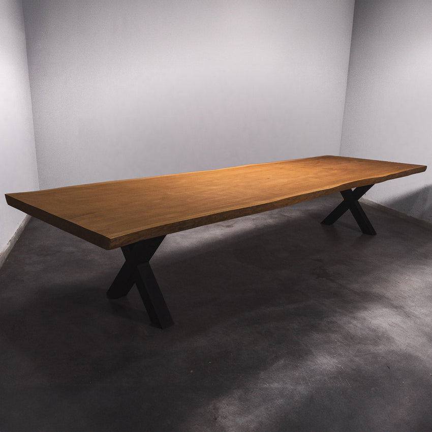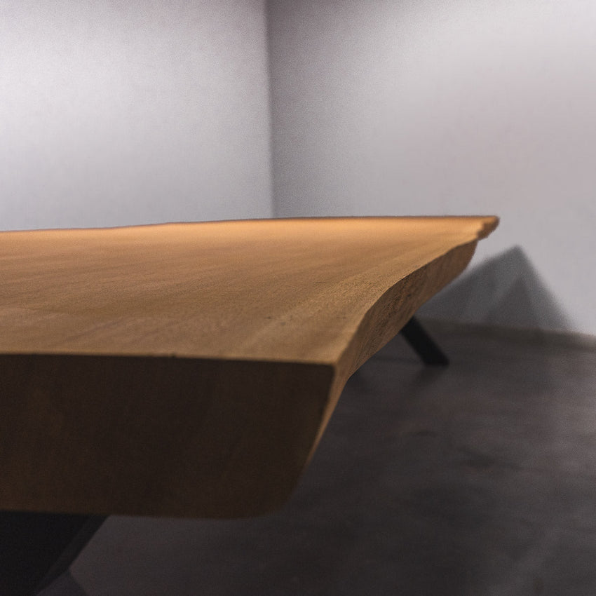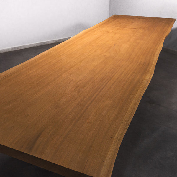 Der Tisch besteht aus einem Stück massivem Sipo-Holz und ist 7cm stark. Dadurch ist das Holz sehr langlebig und belastbar. Natürlich wollen wir nur das Beste für unsere Kunden liefern, weshalb das Holz bis zu 10 / 12% rückgetrocknet wird. Die Unterseite ist mit Stahlprofilen bewährt, um sicherzustellen, dass sich das Holz kaum verzieht.