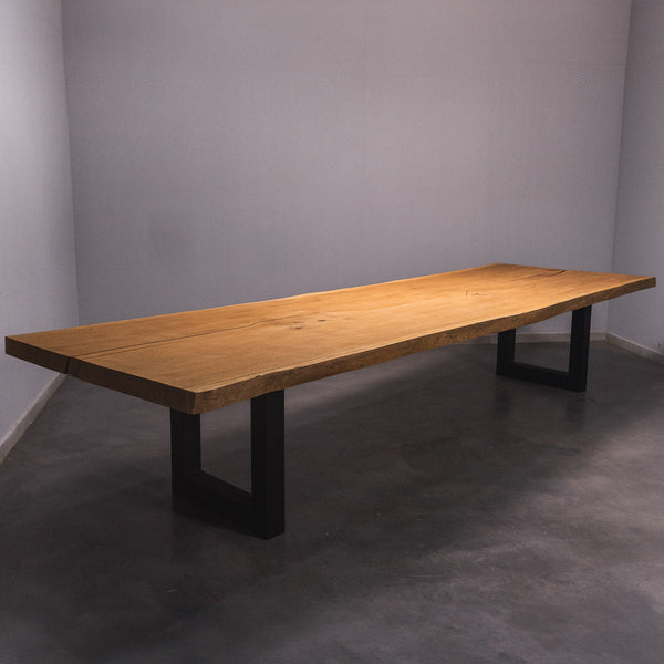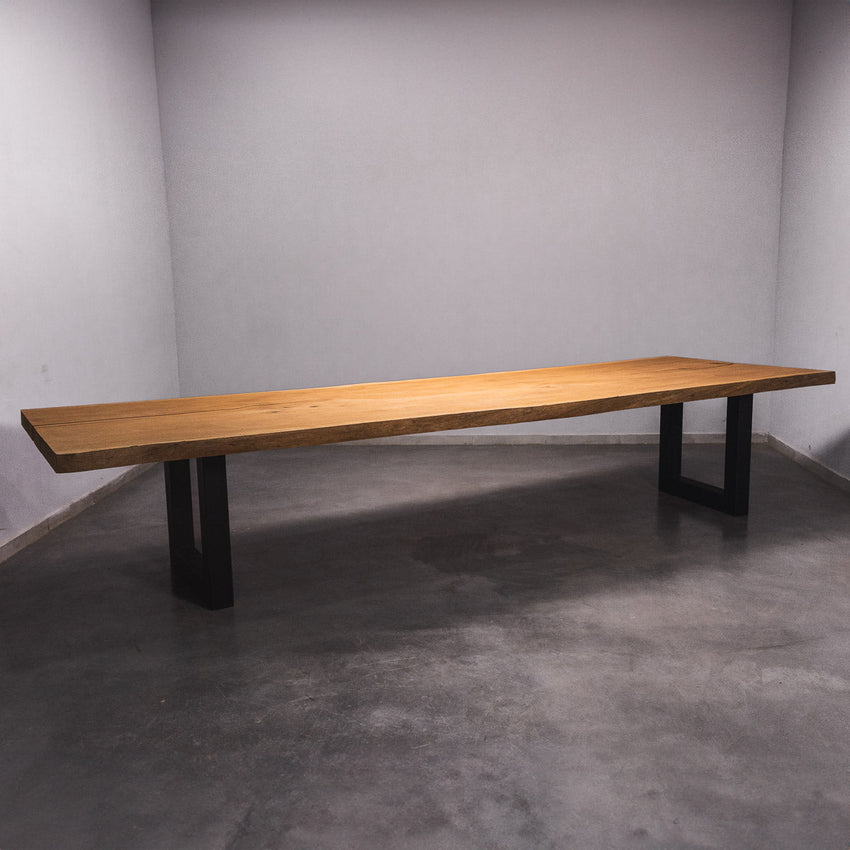 Der Tisch besteht aus einem Stück massivem Sipo-Holz und ist 7cm stark. Dadurch ist das Holz sehr langlebig und belastbar. Natürlich wollen wir nur das Beste für unsere Kunden liefern, weshalb das Holz bis zu 10 / 12% rückgetrocknet wird. Die Unterseite ist mit Stahlprofilen bewährt, um sicherzustellen, dass sich das Holz kaum verzieht.