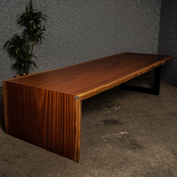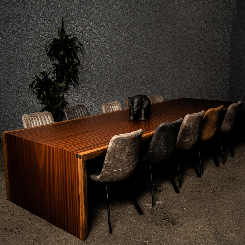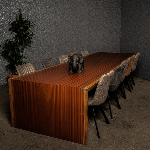 Der Tisch besteht aus einem Stück massivem Sapelli-Holz und ist 7cm stark. Dadurch ist das Holz sehr langlebig und belastbar. Natürlich wollen wir nur das Beste für unsere Kunden liefern, weshalb das Holz bis zu 10 / 12% rückgetrocknet wird. Die Unterseite ist mit Stahlprofilen bewährt, um sicherzustellen, dass sich das Holz kaum verzieht.