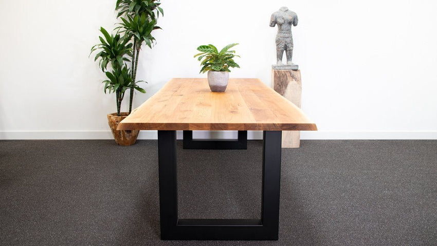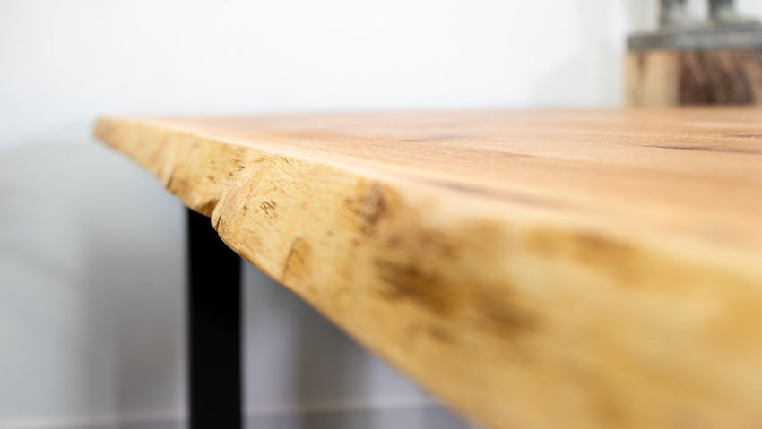Durch die Verwendung von Hartwachsöl erhält der Tisch ein wunderschönes, mattes Aussehen. Die natürlichen Bestandteile des Hartwachsöls dringen tief in die Holzporen ein, wodurch die Struktur und Maserung des Tisches noch besser sichtbar wird.