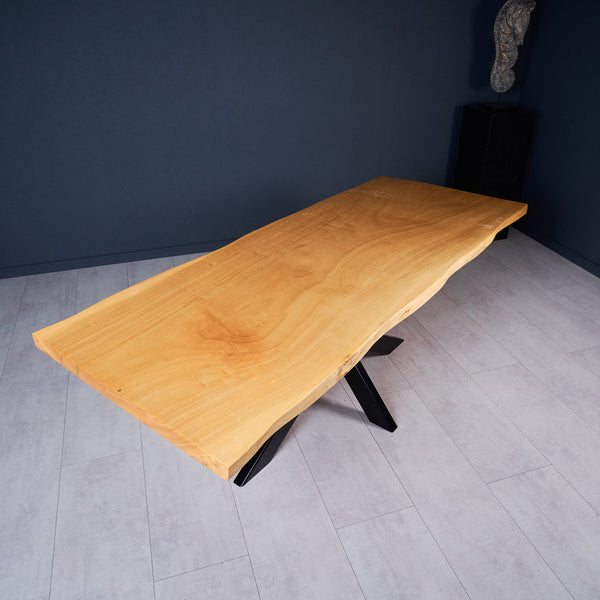Avodiré ist eine wunderschöne Hartholzart. Die Farbe des frisch gesägten Avodiré ist fast weiß. Nachdem es dem Sonnenlicht ausgesetzt wurde, kommt sein wunderschöner hell-goldener Farbton zum Vorschein. Avodire wird aufgrund des einzigartigen Glanzes der Tischplatte oft mit Satinholz verglichen. Das Holz hat eine unregelmäßige Maserung und ist sehr langlebig.