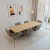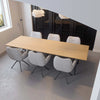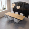 Der Esstisch besteht zu 100% aus massivem Eichenholz und ist 4 cm stark. Dadurch ist der Tisch extrem haltbar und sehr langlebig.